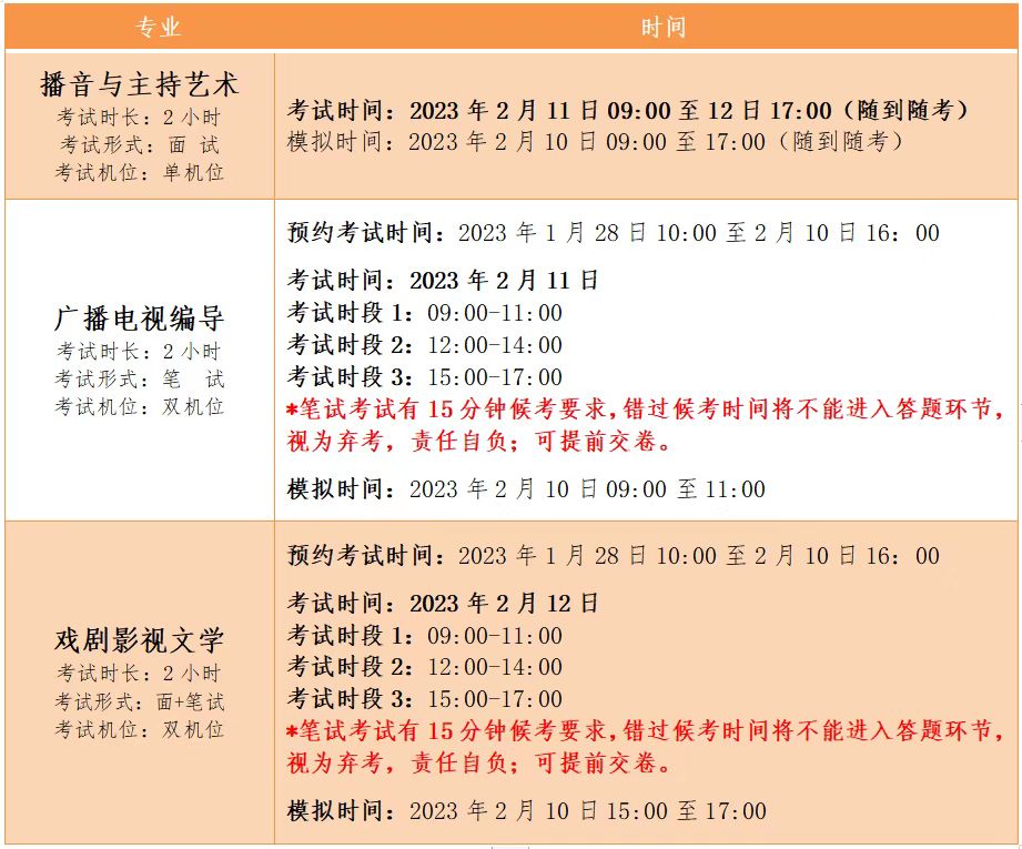 根据教育部办公厅《关于做好2023年普通高校部分特殊类型招生工作的通知》(教学厅〔2022〕8号)精神,按照省教育厅、教育考试院有关文件精神及地方疾控部门相关要求,为做到专业校考与疫情防控两不误,我校招生工作领导小组决定:2023年我校专业校考采用“全程监控、录制视频、提交作品、考评分离”的网考方式进行。现将有关事项公告如下: