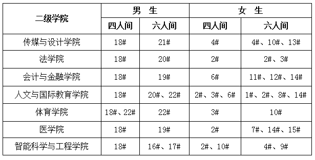 传媒与设计学院、人文与国际教育学院、体育学院新生网上选宿
