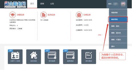 为保障个人信息安全,首次登录成功后,必须及时修改原始密码,并妥善保管密码,二次登录时直接输入新密码即可(如下图);