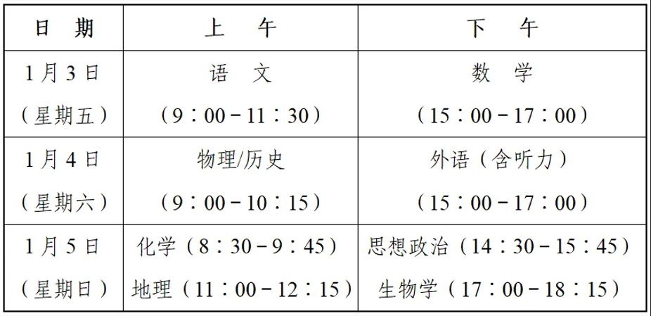 适应性演练测试时间为2025年1月3日至5日,具体时间安排如下: